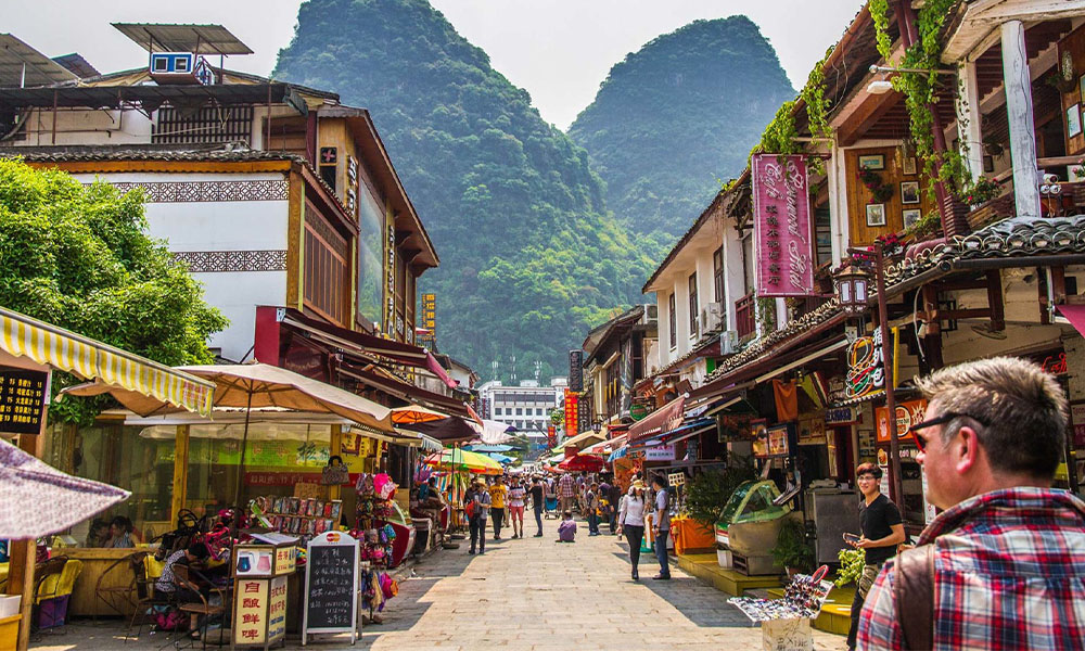 Quế Lâm – Dương Sóc được mệnh danh là “thiên hạ đệ nhất sơn thủy”, nơi vẻ đẹp non nước hòa quyện như một bức tranh thủy mặc sống động. Quế Lâm nổi bật với những dãy núi đá vôi trùng điệp, sông Ly Giang xanh ngọc uốn lượn và những hang động kỳ ảo nổi tiếng. Cách đó không xa, Dương Sóc lại mang vẻ đẹp dịu dàng, bình yên với làng quê ven sông, ruộng đồng xanh mướt và nhịp sống chậm rãi đầy thi vị. Đến Quế Lâm – Dương Sóc là đến với không gian trong lành, thơ mộng, nơi ta có thể sống chậm lại một chút thả hồn vào thiên nhiên.